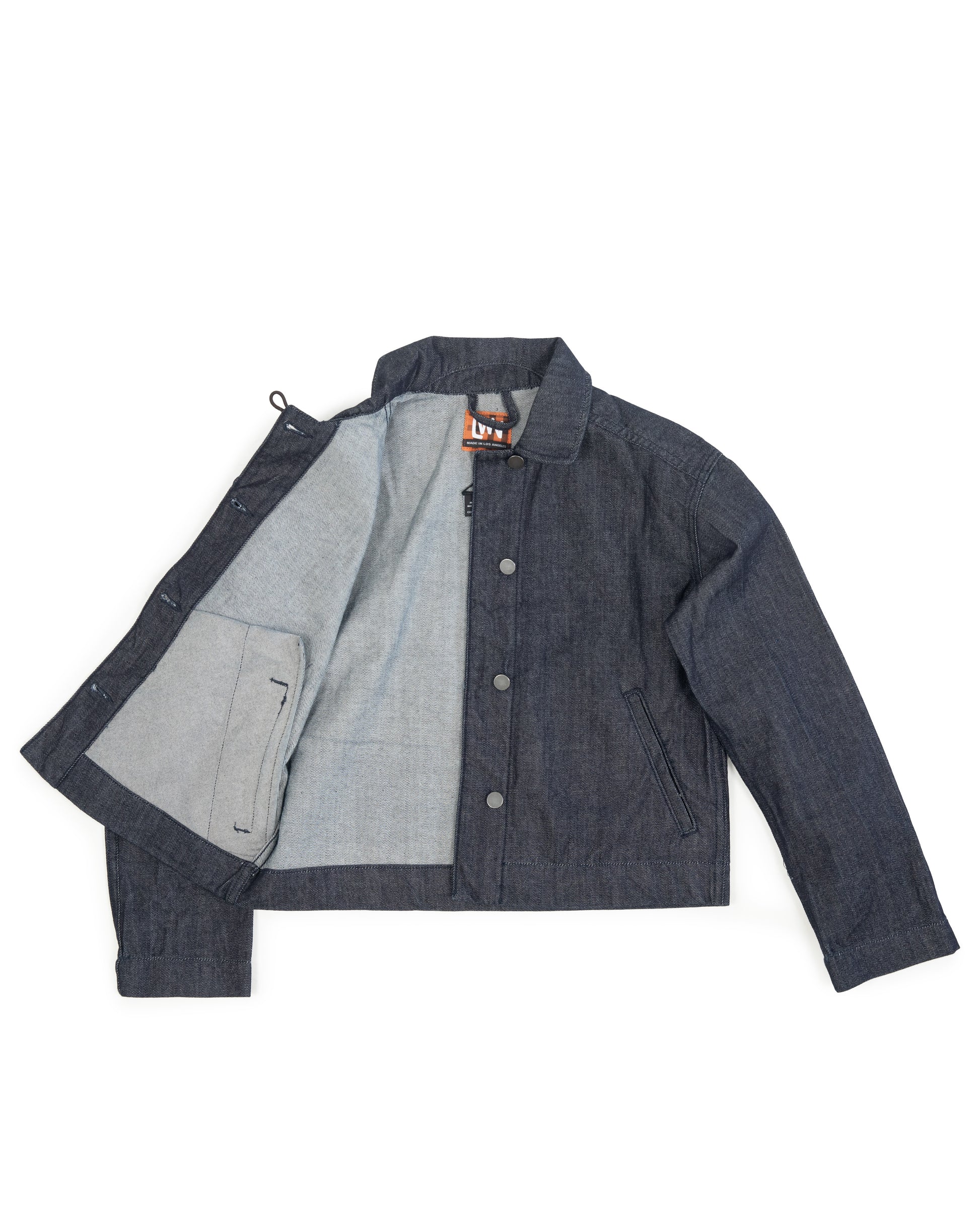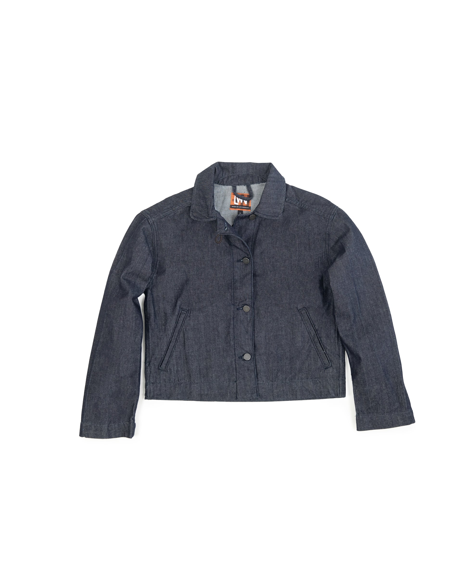 Our Cactus jacket is a compact wonder. Cut like your favorite worn-in jean jacket, it falls at the hip and is great over a button down shirt or light sweater. This jacket is finished with antique nickel finish jean buttons and tailored welt pockets. This rigid denim holds shape beautifully and will only get better with wear.