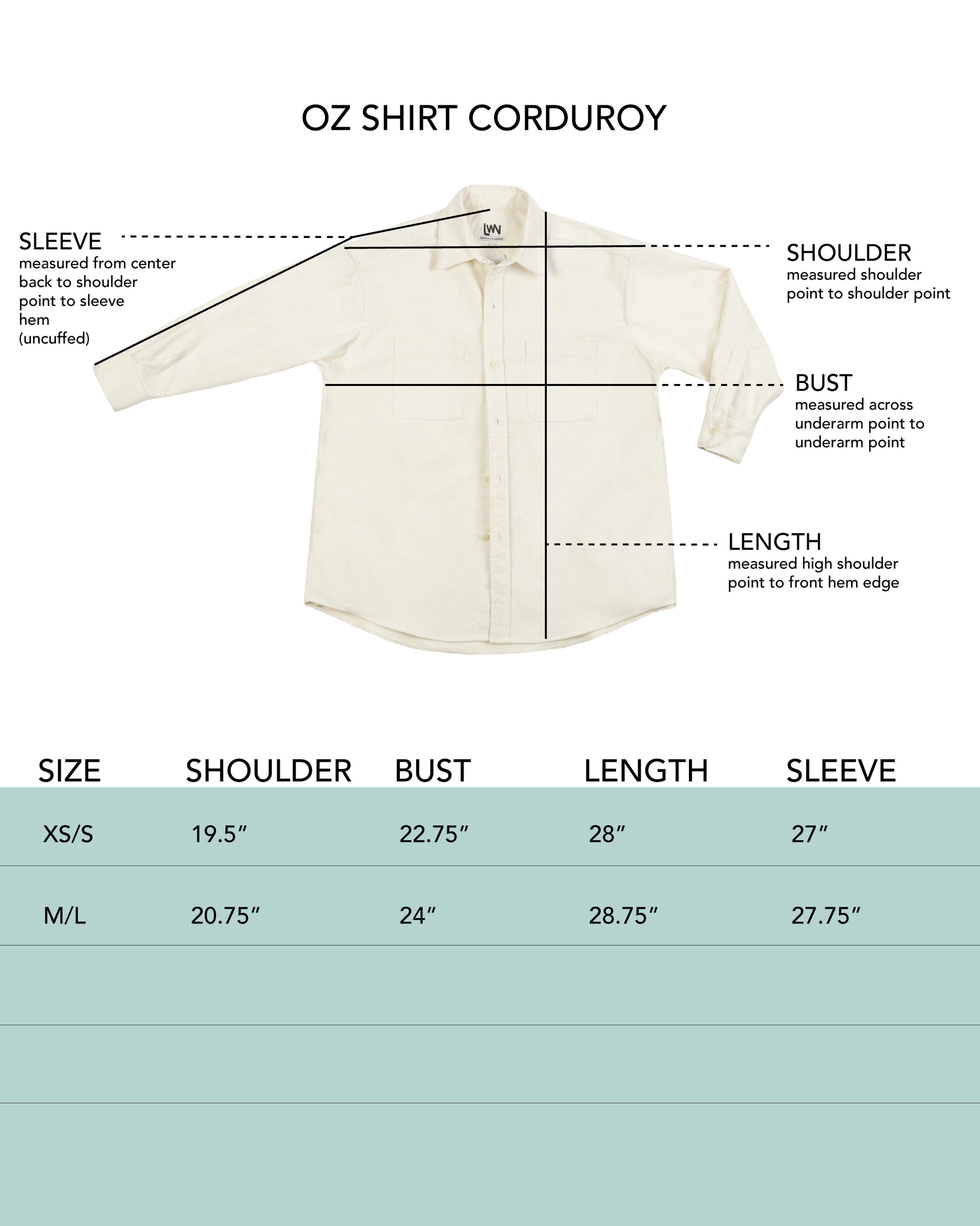 The Oz is an oversized shacket with our fit tweaks. The body is 90s oversized, with dropped shoulders and roomy, bracelet length sleeves. Side seam pockets at the hem and two front chest pockets, with deep pleats at back yoke and at the cuffs.
