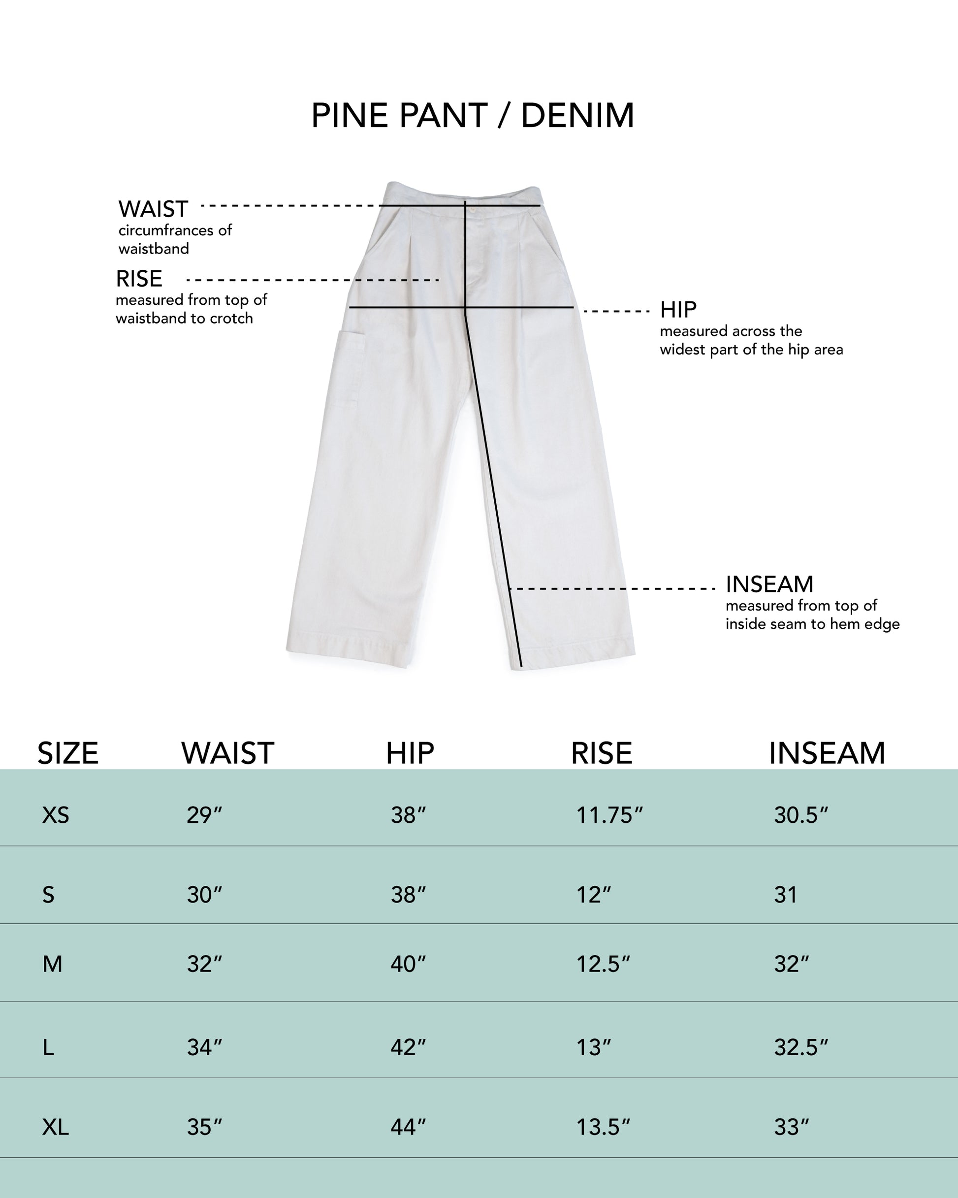 The Pine pants cut from a solid 100 cotton undyed 14 oz denim, stonewashed for the broken-in softness. Cotton poplin detailing for pockets and inside finish