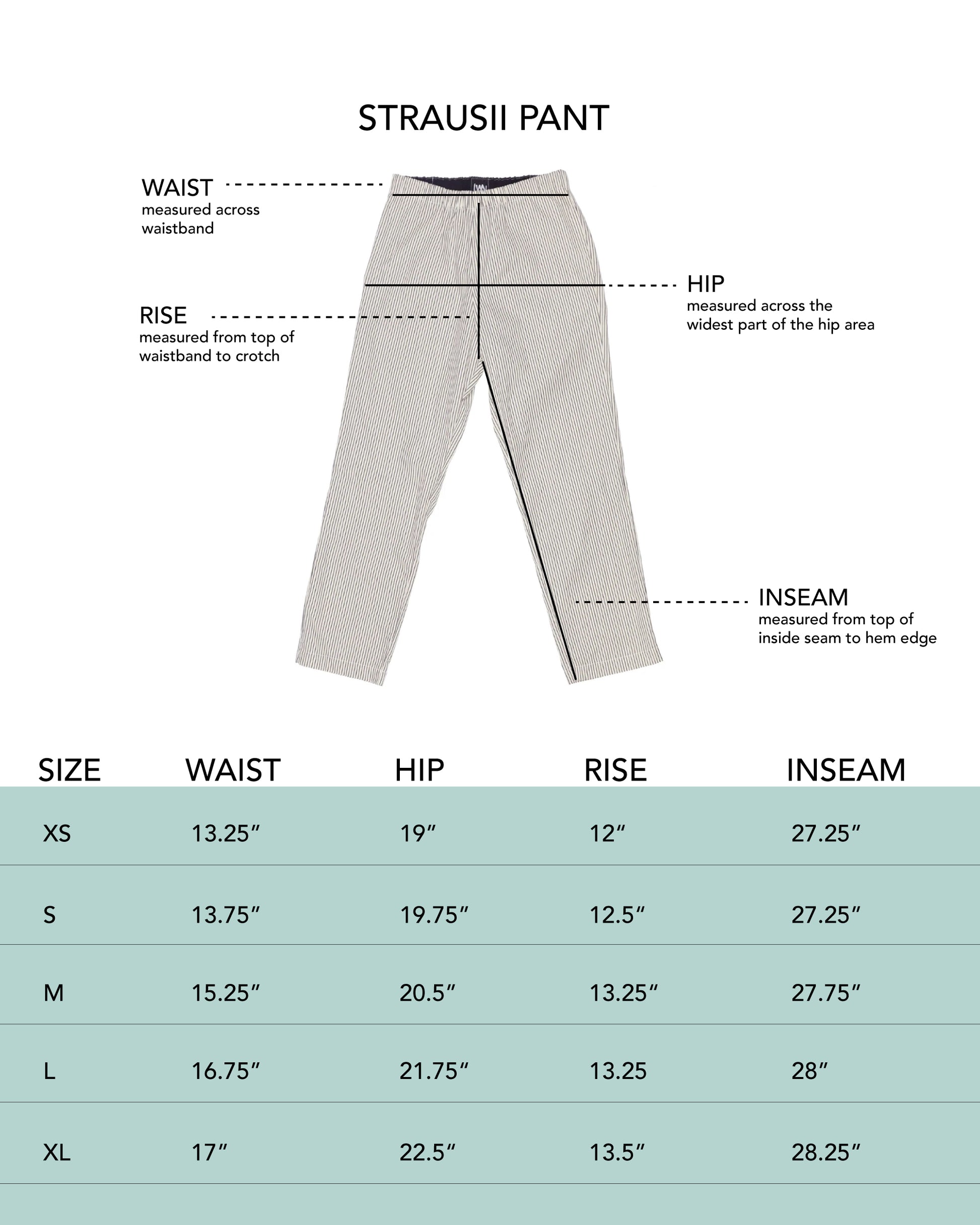 Strausii is our take on a classic pajama inspired pant that we wear all day, all year long. A straight-legged, easy pull-on with an elasticized waist and in-seam side pockets.
