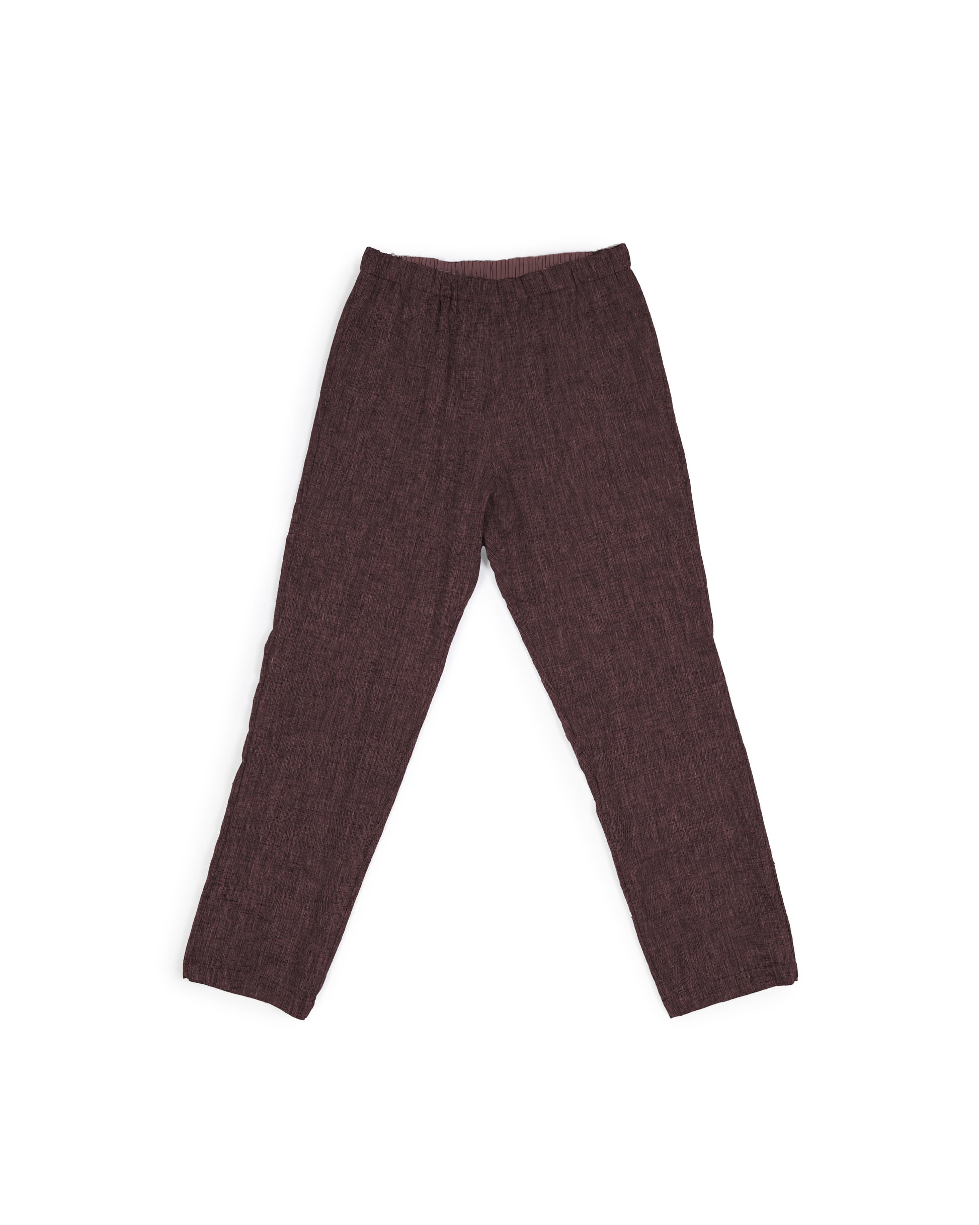 Strausii is our take on a classic pajama pant. A straight-legged, easy pull-on with an elasticized waist and in-seam side pockets. Contrast waistband details and deep side-seam pockets. Don't forget your keys!